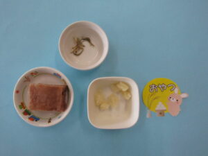 20250917 2025 9/17 ・麦ごはん ・鶏肉の唐揚げ ・ほうれん草の煮浸し ・けんちん汁 ・牛乳 <離乳食> ・軟飯(お粥) ・鶏肉の野菜あんかけ ・ほうれん草の煮浸し ・けんちん汁 <おやつ> ・ココア蒸しパン ・小魚 今日の給食
