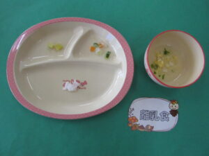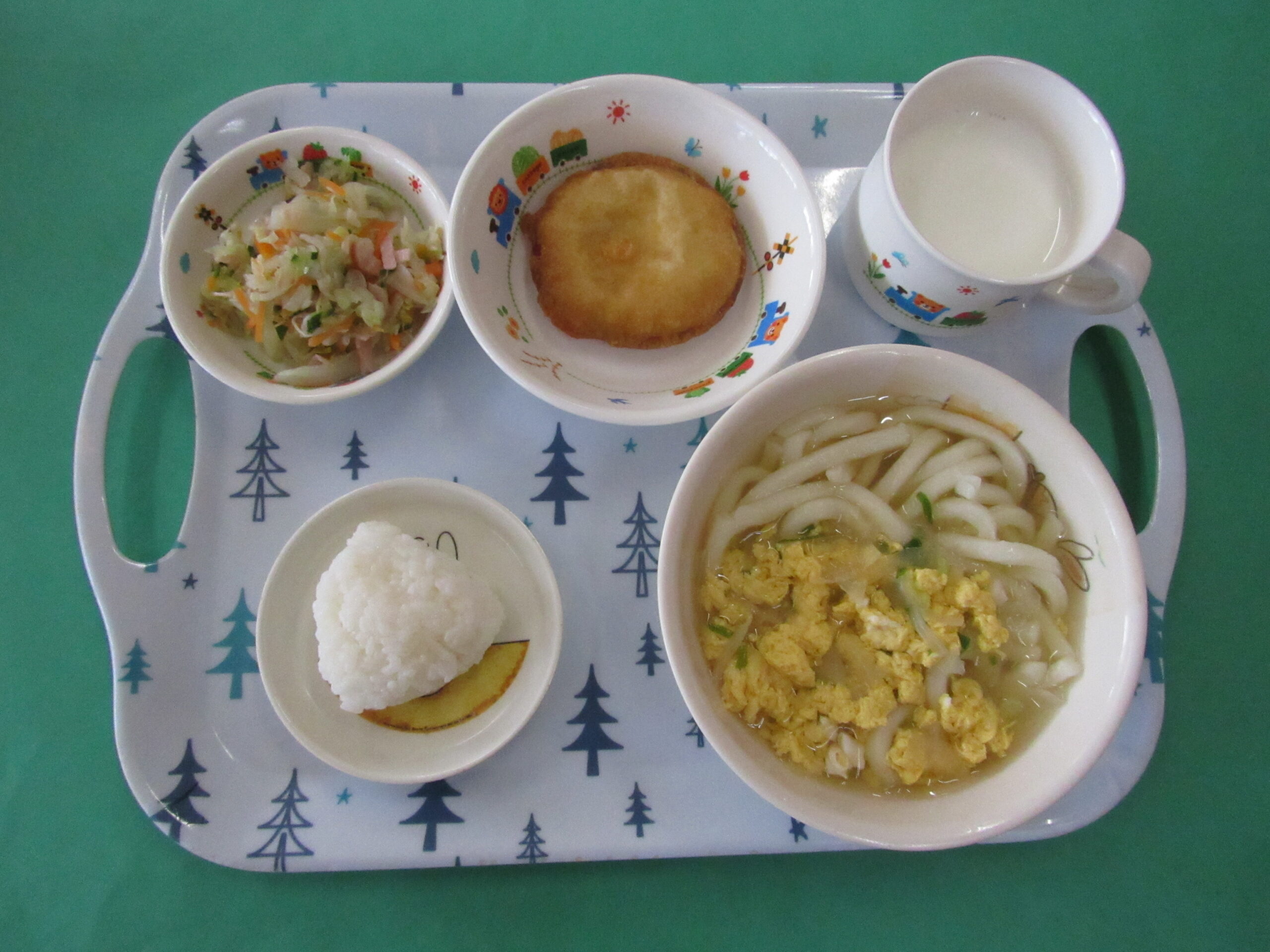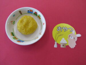 20251011 2025 10/11 ・おにぎり ・かき玉うどん ・芋天 ・胡瓜の酢の物 ・牛乳 <離乳食> ・軟飯(お粥) ・かきたまうどん ・さつまいも煮 ・きゅうりの酢の物 <おやつ> 南瓜のおやき 今日の給食